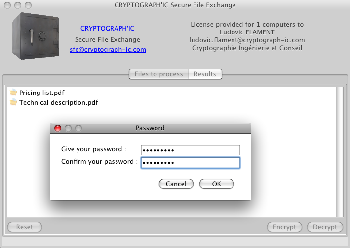 - Cryptograph'IC Secure File Exchange version MAC OS X Universal Binary (10.4 and after) :