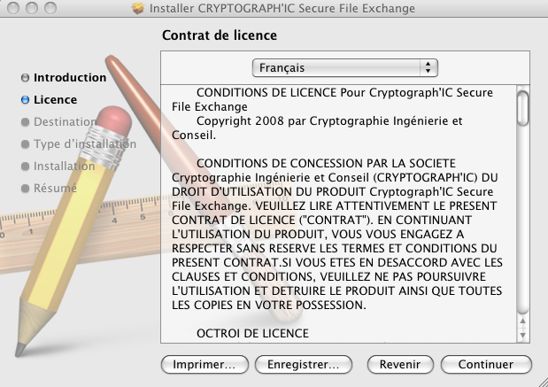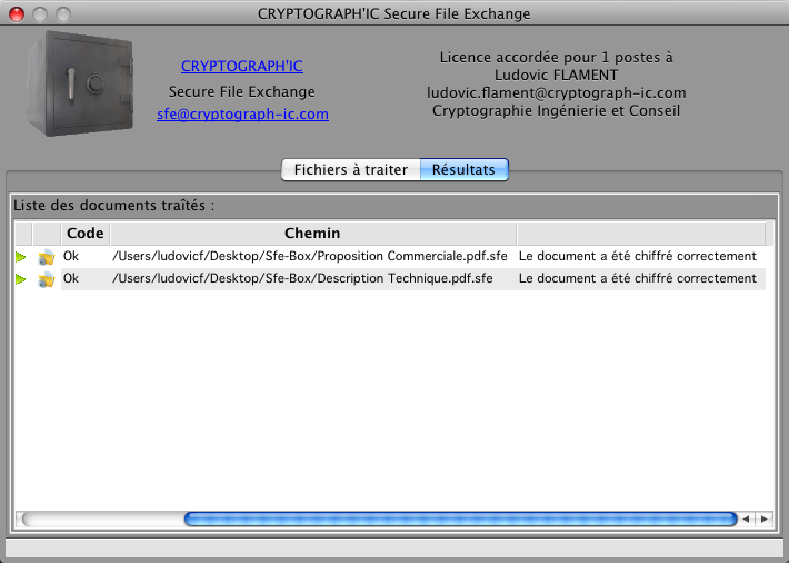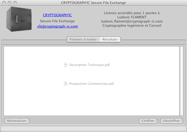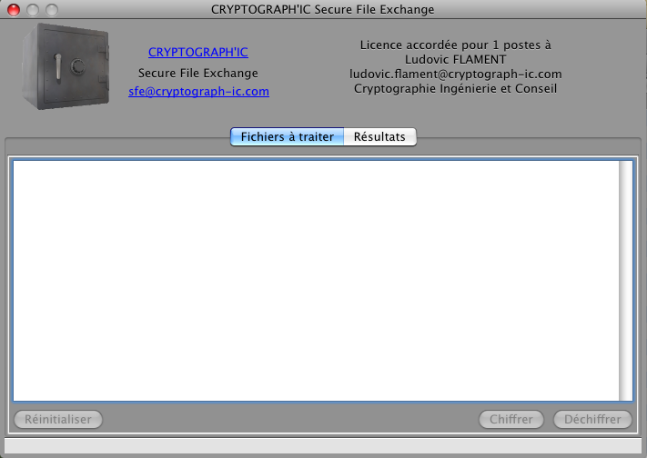 - Cryptograph'IC Secure File Exchange version MAC OS X Universal Binary (10.4 et suivante) :